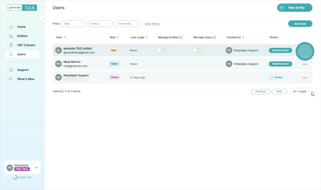 This guide offers step-by-step instructions to delete a user. The owners' account cannot be deleted. You can assign a new owner and then it can be deleted. 1) Click the 3 dots next to the user or client to be deleted and select Delete User. 2) ...