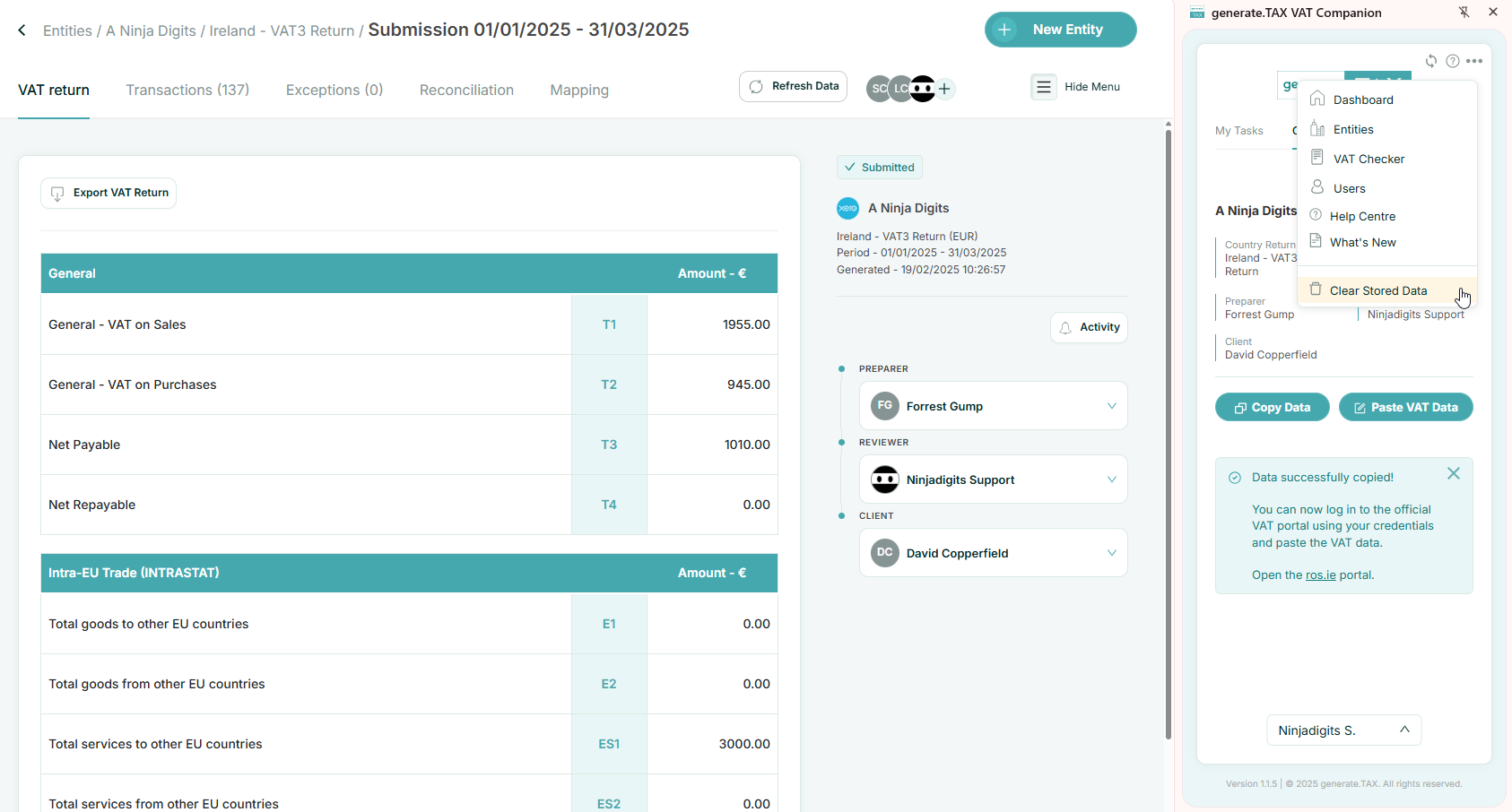 You will see a successful message that the data was copied with the next step to proceed in the official VAT portal.
