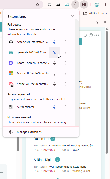 4) You can pin the generate.TAX extension so it is easier to locate and use.