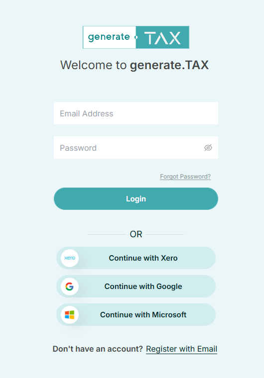 We are committed to simplifying how users securely sign up and log in to generate.TAX. This button allows you to log in seamlessly using your Microsoft Work account, ensuring a smoother and faster experience when preparing VAT submissions. 1) Once on ...
